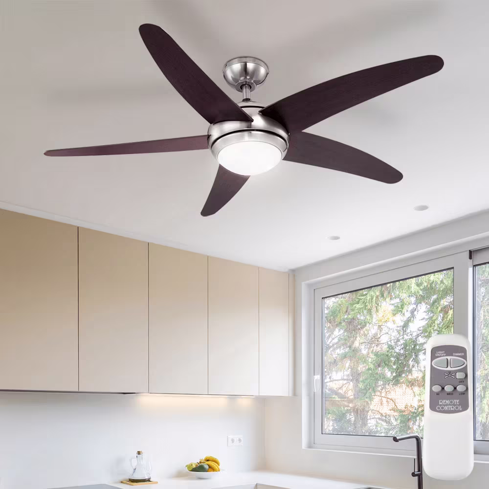 Un ventilatore da soffitto con illuminazione combina due importanti funzioni: circolazione dell'aria e fonte di luce. È particolarmente pratico nelle stanze in cui ogni installazione a soffitto è importante, ad esempio in soggiorno, in camera da letto o sopra il tavolo da pranzo.