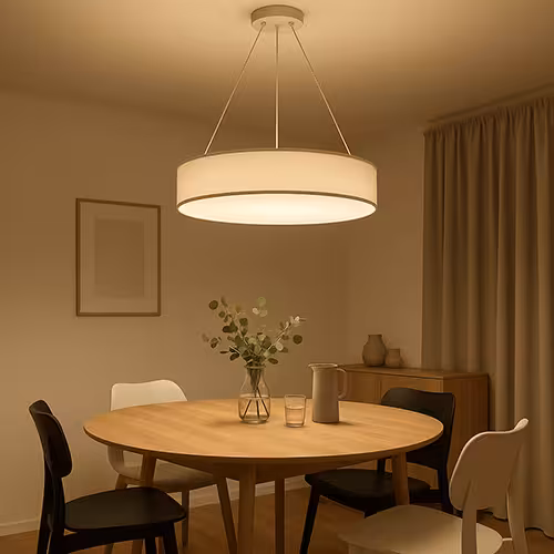 La luce bianca calda è invitante e accogliente. Ideale per le lunghe serate a tavola. Il bianco neutro è adatto se la sala da pranzo funge anche da luogo di lavoro.