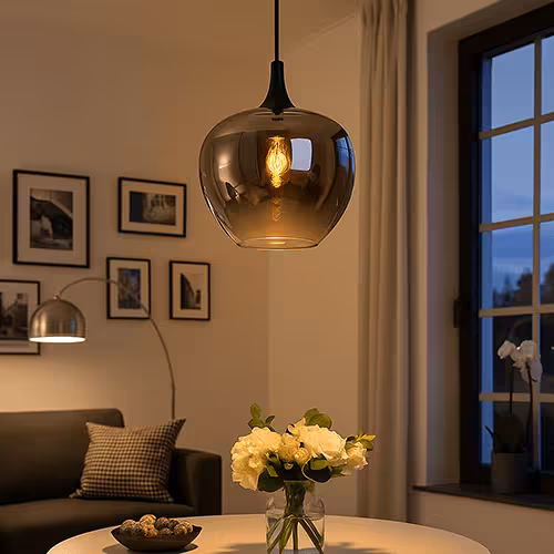 - Tavoli piccoli: lampade a sospensione a fiamma singola con paralume compatto.