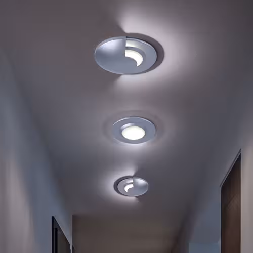 Tornate a casa la sera e non volete cercare l'interruttore della luce al buio? In un corridoio lungo e stretto, i faretti da incasso a soffitto forniscono un'illuminazione uniforme e una luce piacevole grazie alla loro disposizione intelligente lungo il corridoio. In questo modo l'intera area appare luminosa e invitante e ogni ospite si sente benvenuto.