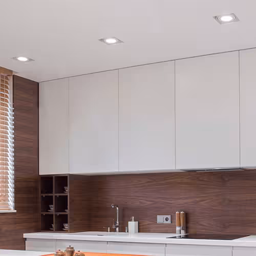 In cucina , i faretti da incasso a soffitto possono essere installati appositamente sopra le superfici di lavoro come l'isola o il lavello. Forniscono una luce brillante e focalizzata che facilita la preparazione dei cibi e allo stesso tempo crea un'atmosfera accogliente quando si cucina con gli amici.