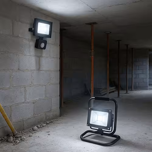 - Potenza luminosa (lumen): Per piccole aree interne, spesso sono sufficienti da 1.500 a 3.000 lumen. Per le grandi aree esterne o per il lavoro notturno, si consigliano proiettori da costruzione con almeno 10.000 lumen - o molto di più, a seconda dell'area.
