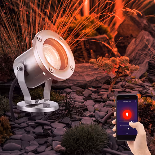 Le luci da esterno Smart Home sono luci da esterno con controllo in rete. Comunicano tramite Wi-Fi, Zigbee o Bluetooth con un'app, un centro di controllo smart home o direttamente con la voce, ad esempio tramite Alexa o Google Assistant. Siete voi a decidere quando la luce si accende, con quale intensità o in quale colore.